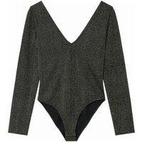 Descrizione: Body Doppio scollo a V in jersey lurex. Maniche lunghe. Pantaloni scollati. Chiusura con bottoni a pressione. Taglio aderente.
