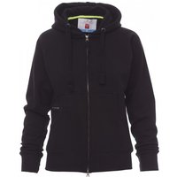 Descrizione: Felpa da donna, slim fit, full zip coperta da SBS, in plastica e con doppio cursore in metallo. Cappuccio con due cuciture, coulisse bianca con cuciture in tinta e anelli metallici. Maniche raglan, tasche a canguro con piccola tasca con zip, polsini e vita a costine elastiche. Cuciture rinforzate.Composizione: 70% COTONE + 30% POLIESTEREAspetto: SPAZZOLAPeso: 300 GR/MQImballaggio: 5/20